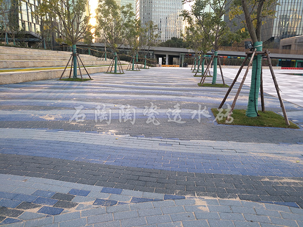 >石陶陶瓷透水磚采用陶瓷廢料為主原料,經過二次布料成型,高溫燒成,是具有保持地面透水性、保溫性、抗壓、吸音、降噪、防滑、耐風化、抗寒可重復使用等優點的綠色環保產品。